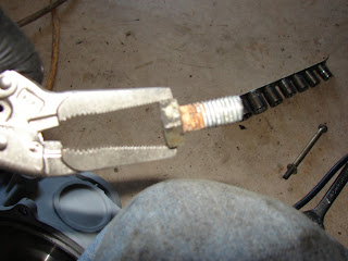 In some manner or other I got the nuts cut off. Two required additional persuasion with a chisel and hammer. They provided little resistance to these brutal tools.