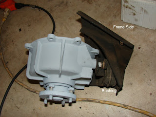 Getting the frame mount loose from the bushing is only sticky point here. Once those two are separated, you can remove the bushing and its mount from the VC which is held in place with 19mm bolts. That just so happens to be the largest socket in my set. One of these bolts was badly corroded.