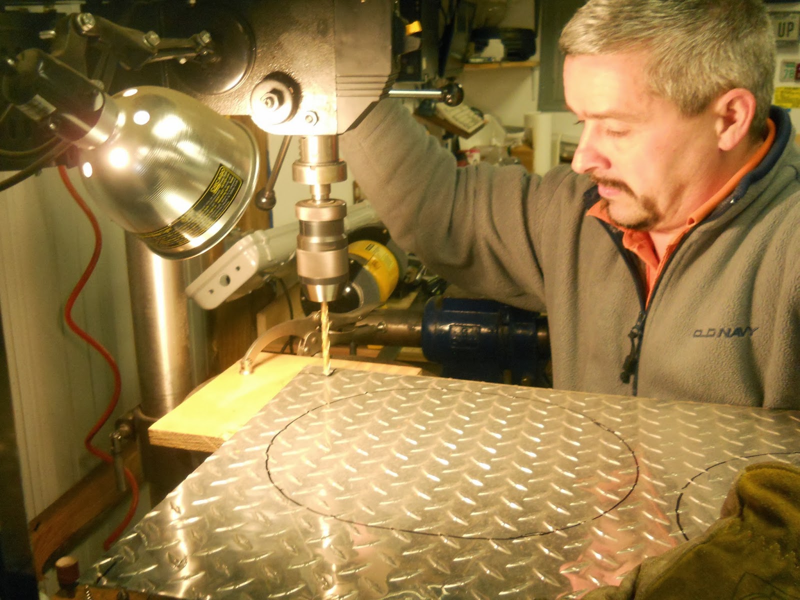 We then took the template to the aluminum diamond plate. We used diamond plate because it looks freaking awesome. That, and it is thick enough to carry the weight of the fans and is rigid enough to keep still when the vehicle is in operation.