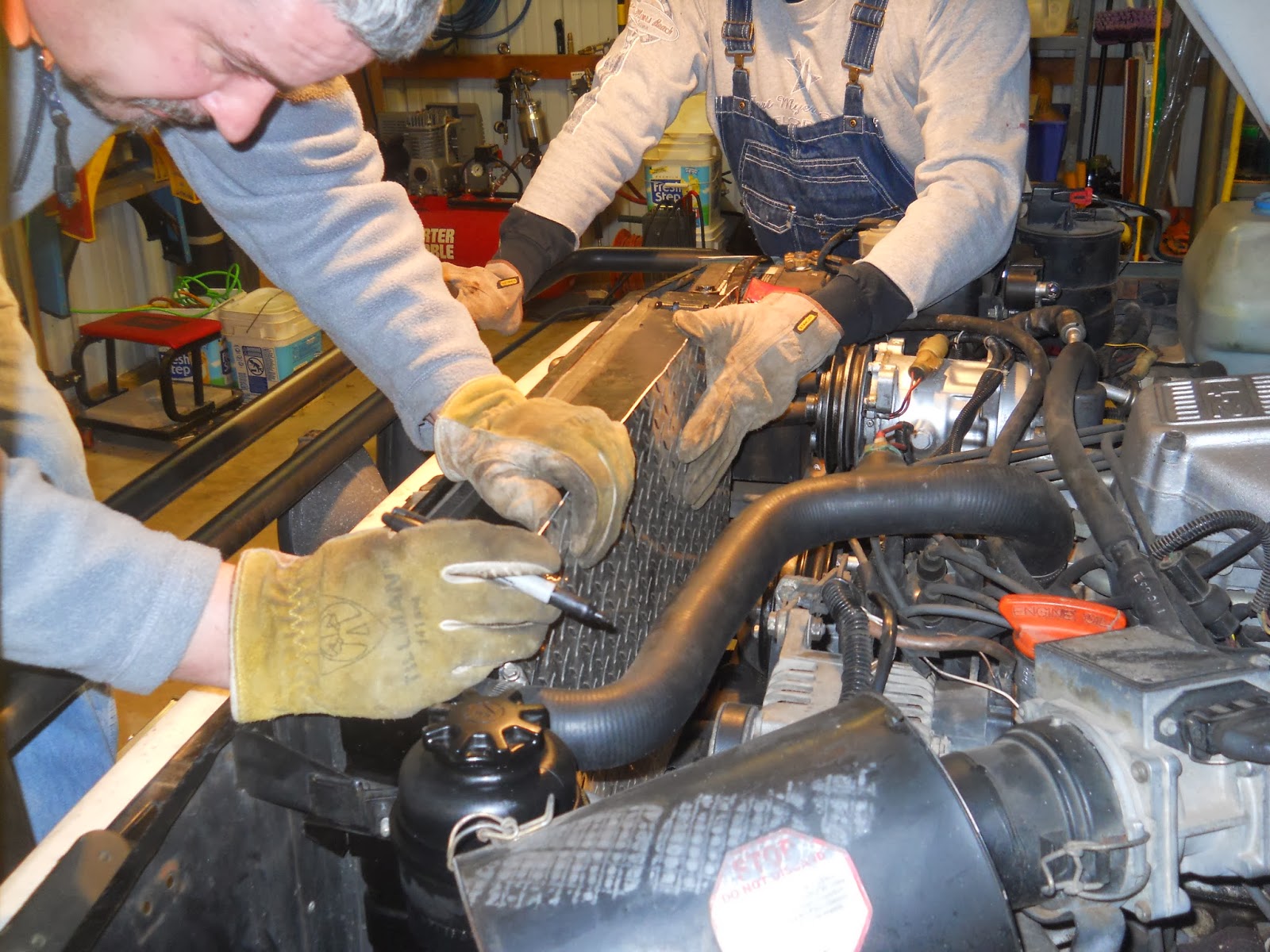 Over the weekend I employed The Evil German Dude and the newly named Paparazzi Ford (Butch) to assist in the install of the electric fans. As this will be a somewhat lengthy post let me start by saying, thank you Frank. Without you this project would have been completed but would have been no where near as freaking awesome as it turned out.