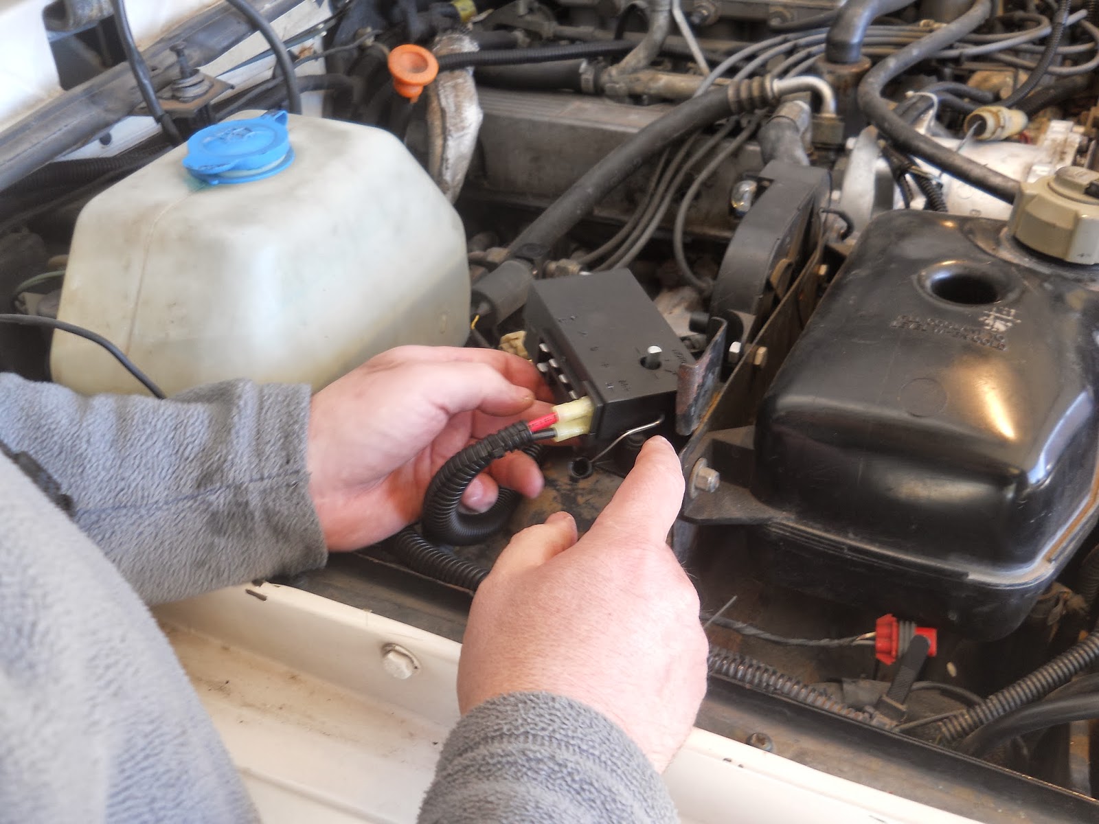 We tested the switch first. I turned the ignition on and flipped the switch. We didn’t have anything at first. EGD checked the wiring and we noticed the connectors were poorly fitted and needed some adjusting to make better connections. With that sorted we tried it again and the fans spun….the wrong way. We had wired them backward. So EGD swapped the wires and we tested it again…success!