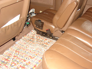 I put the carpet back in and buttoned it all down. I cleaned the rear seat with leather cleaner and then gave the seat a good soaking with conditioner. The leather is quite dry in several places and with out a LOT of attention it will be gone soon.